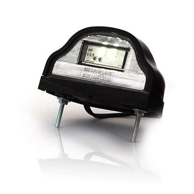 LED number plate lighting with rounded design in red glass and clear glass at the bottom. Contains 2 diodes.